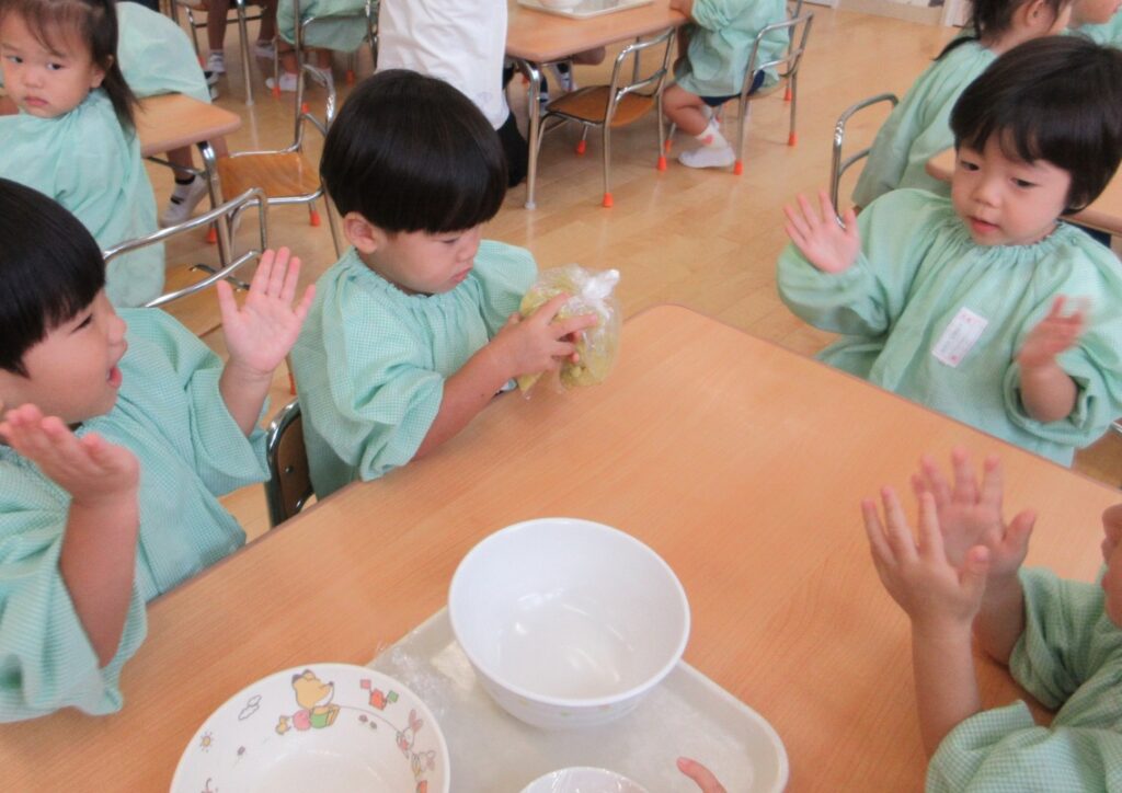 「あまくて、おいし~!」と笑顔いっぱいの子どもたちでした。