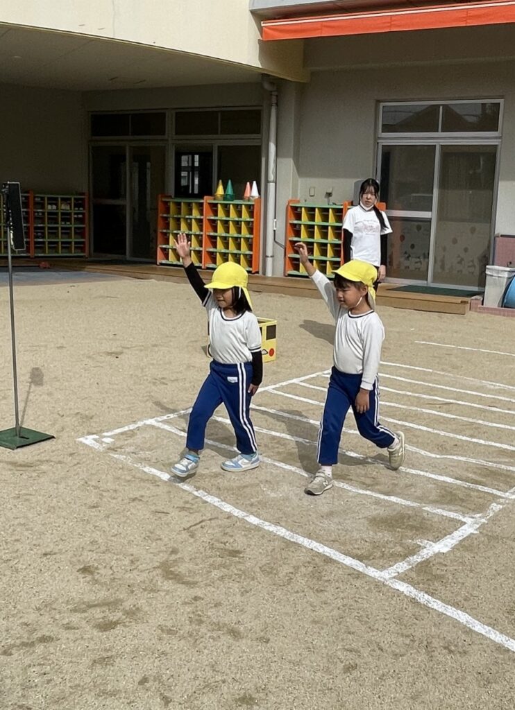 その後、警察の方に指導してもらい、園庭の模擬道路で実地訓練をしました。