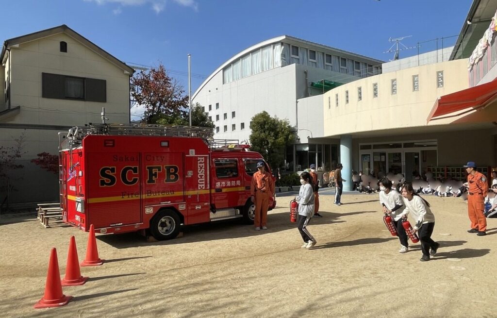中消防署の消防士の方に立ち会っていただき、避難訓練を行いました。