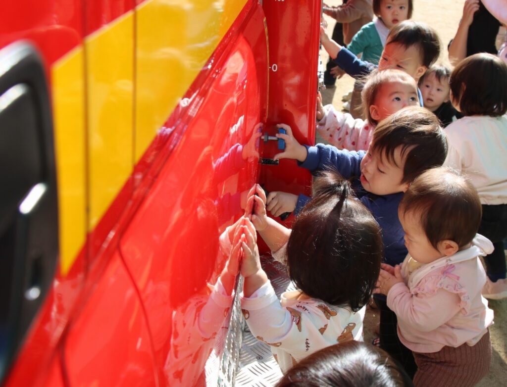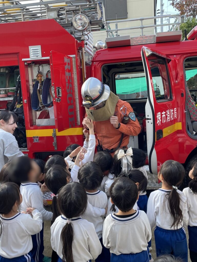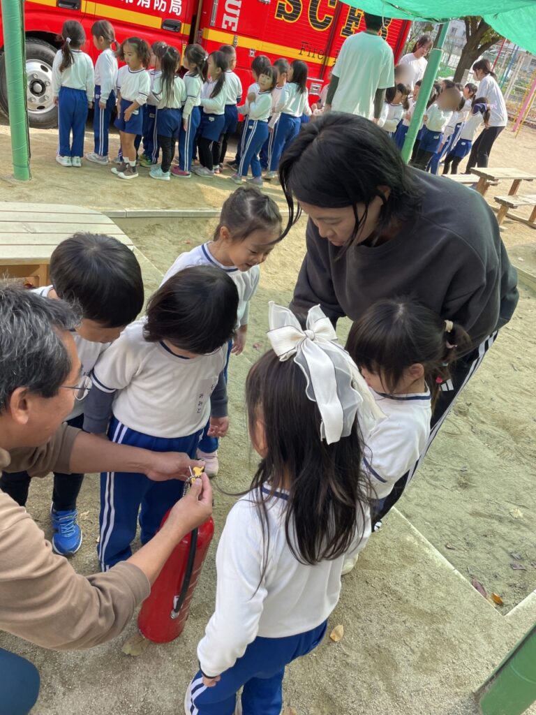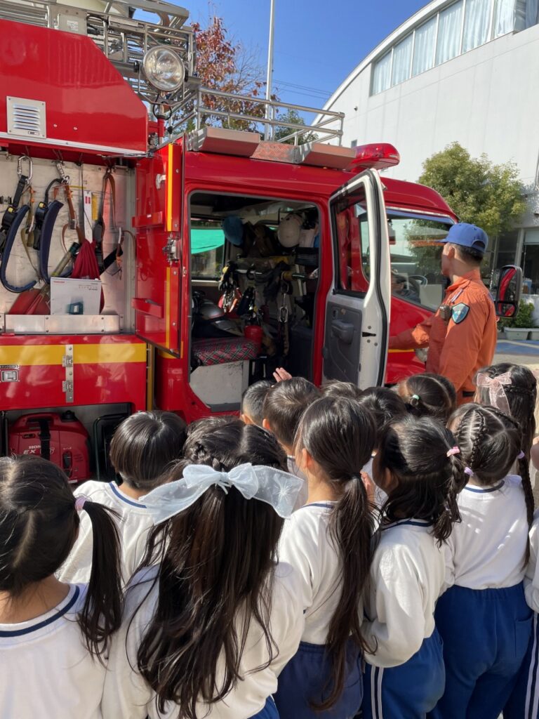お話を聞いた後は消防車の近くに行き、じっくり見たり触ったりして見学をしました。