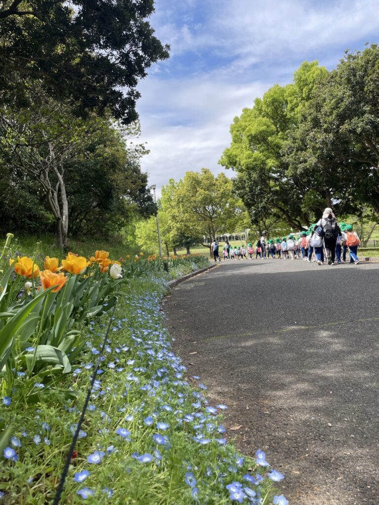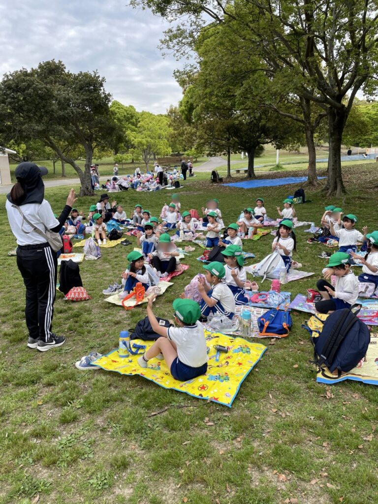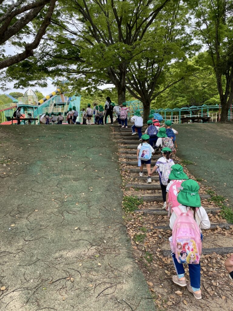 年長クラスの春の遠足で、蜻蛉池公園に行きました。
