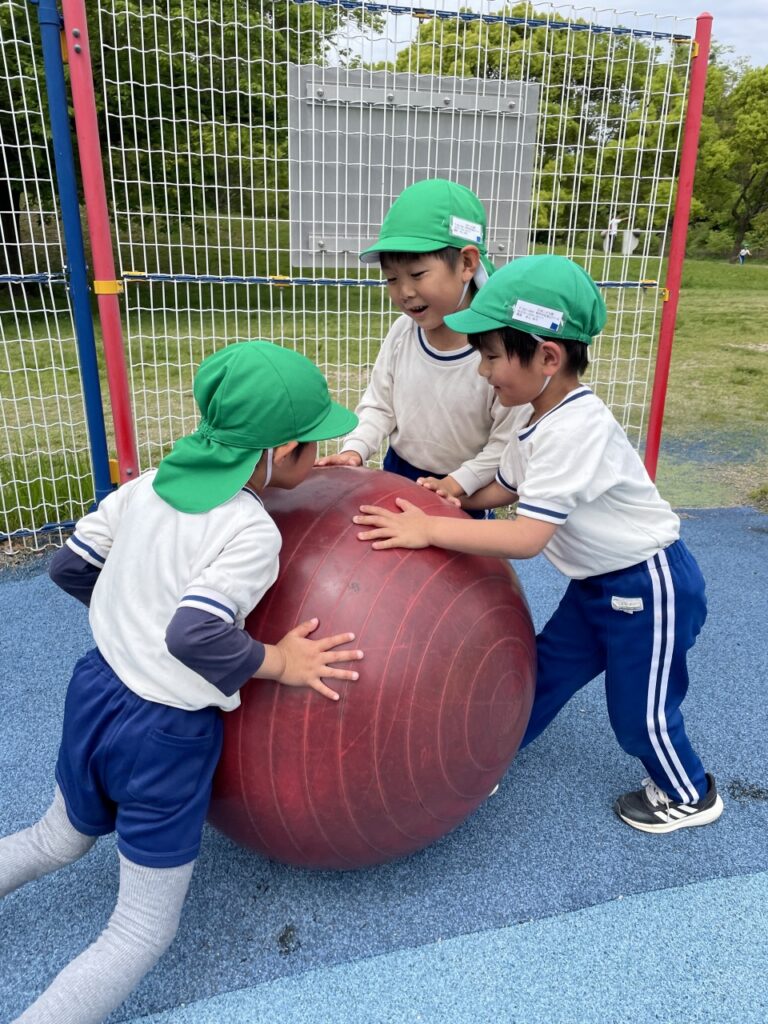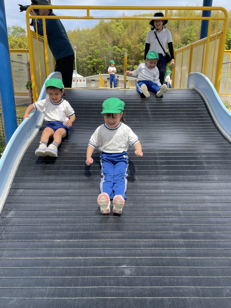 滑り台を滑ったり、お友だちと大きなボールを転がしたりと、目一杯遊ぶことができました。