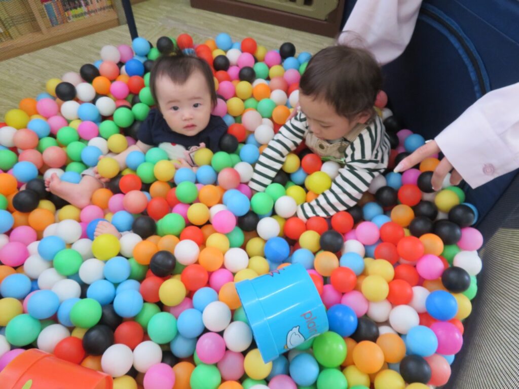 お部屋では、ボールプールをしたり、大型ブロックをしたり・・・